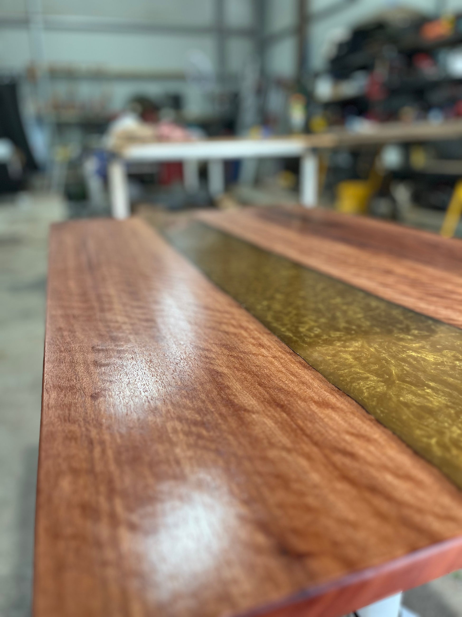 Bloodwood Office Desk with Metallic Gold Resin Inlay